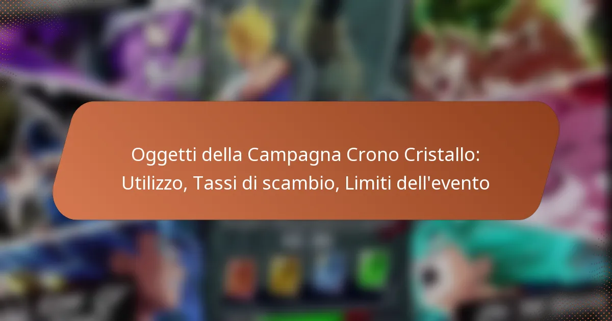 Le Campagne di Cristalli Crono sono eventi strutturati all'interno di Dragon Ball Legends che mirano a fornire ai giocatori opportunità di guadagnare Cristalli Crono attraverso il gameplay. Lo scopo principale è incentivare la partecipazione e mantenere attiva la comunità offrendo ricompense utilizzabili per evocare personaggi o acquistare oggetti.